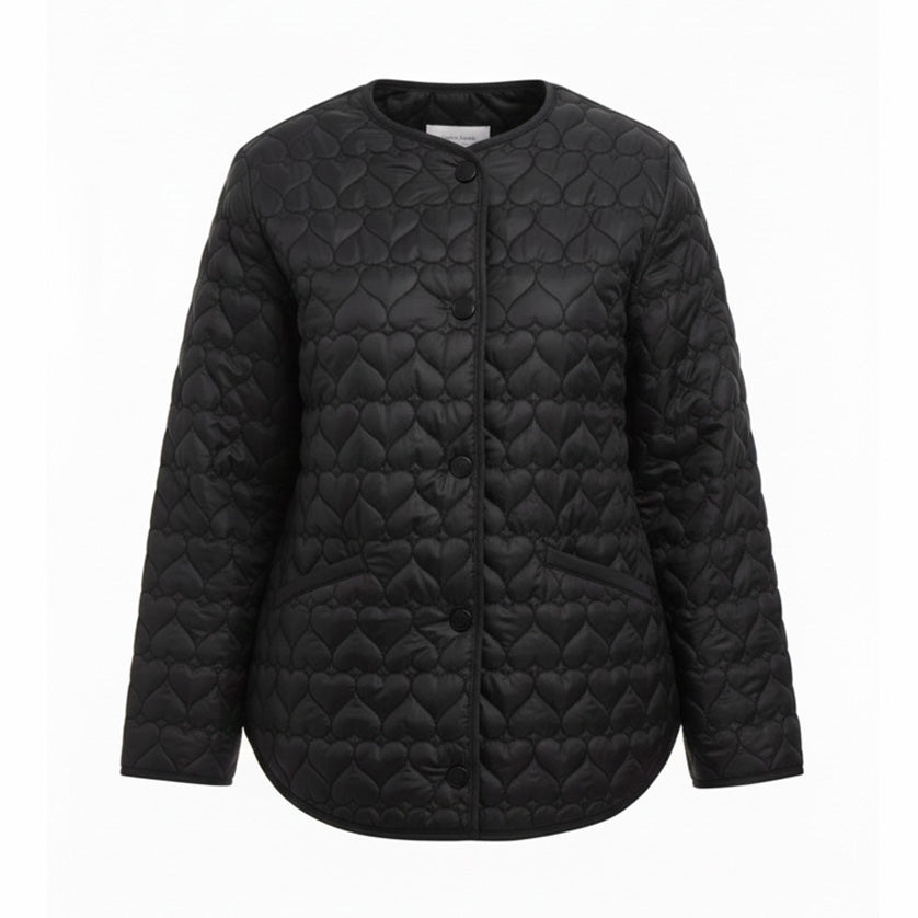 Stay comfortably covered in our Heart-Quilted Long Sleeve Jacket. Combining functional warmth with whimsical design, this jacket features the unique all-over heart quilting pattern and practical full-length sleeves. It is secured with a full button closure for an elevated look.