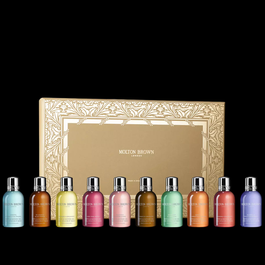 The perfect Molton Brown calling card: a curated introduction to their ten most-loved Bath & Shower Gels, from charismatic, woody icons to sunny, citrus scents and blossoming floral favorites. Includes iconic fragrances and latest additions. Keep as a grand gift for yourself or as the ultimate scented surprise for someone you love.
