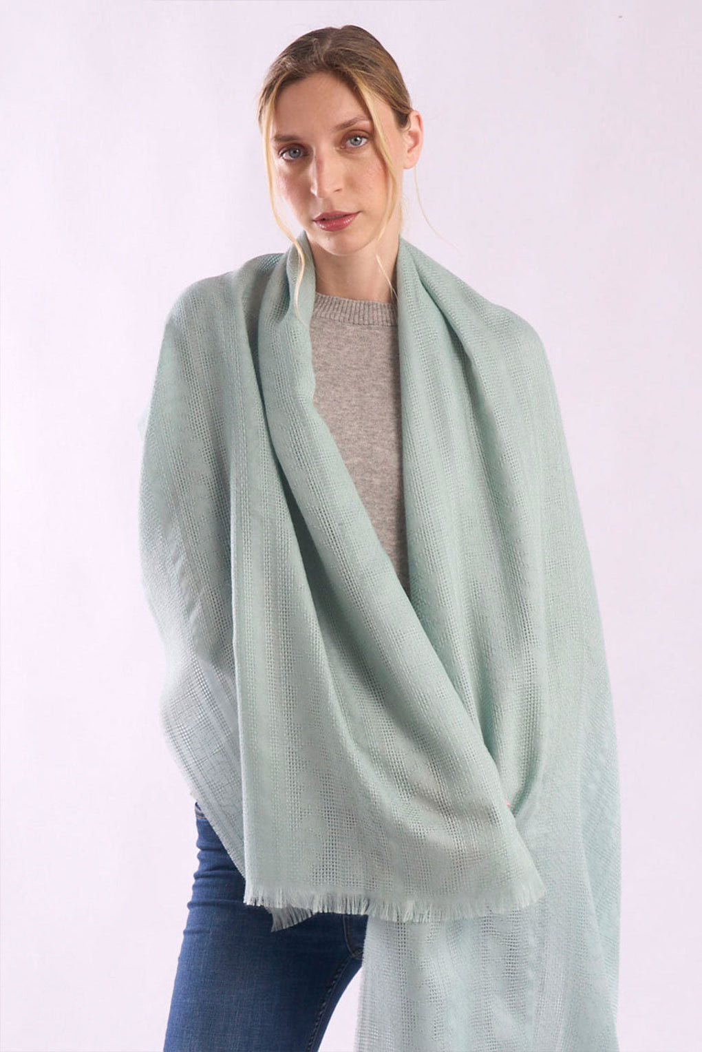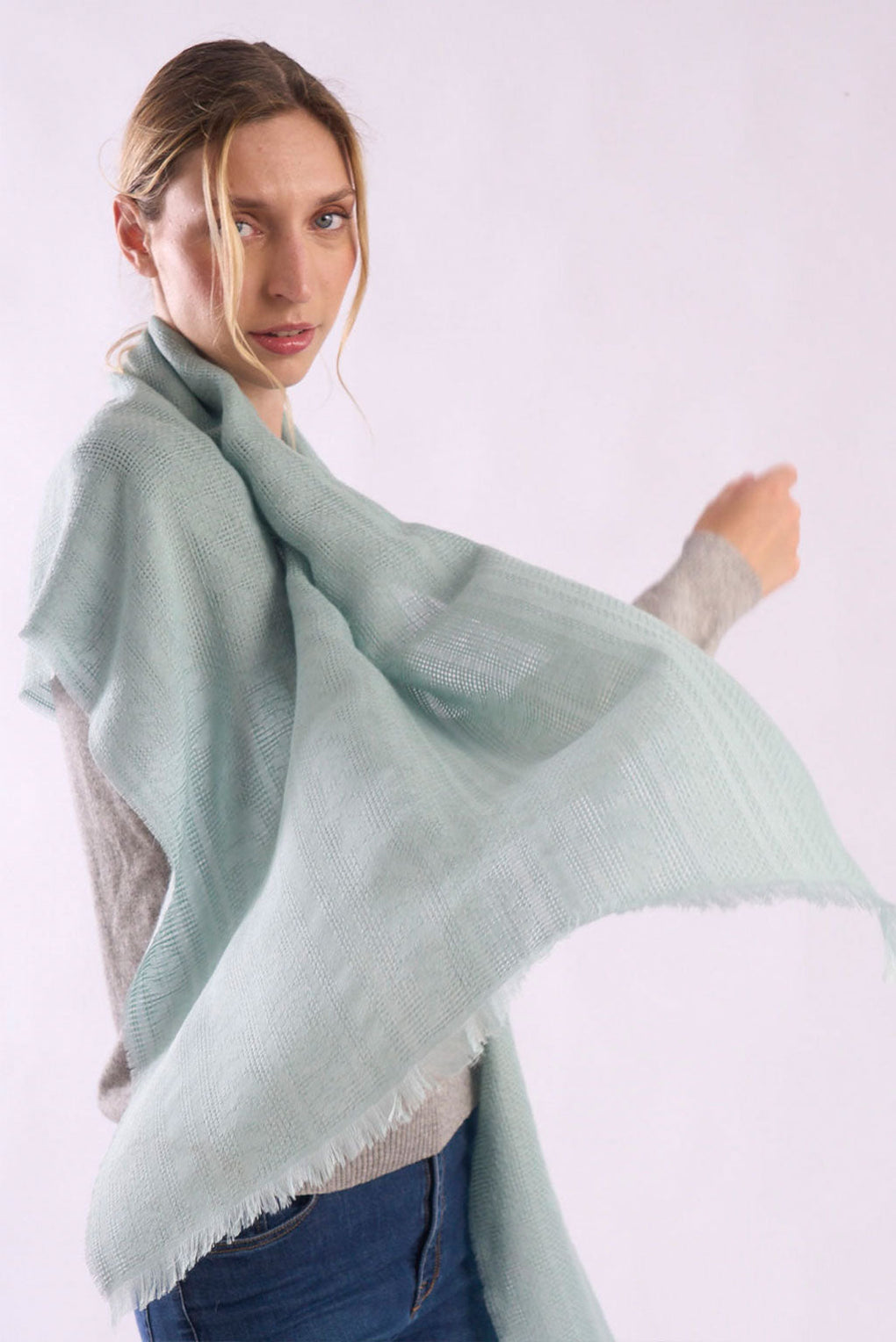 Wrap yourself in the refined luxury of the Traforatto Baby Alpaca & Silk Shawl. Its lightweight, airy design drapes beautifully, adding a touch of sophistication to any look. Whether you're dressing up for an evening out or layering for a casual day, this shawl blends comfort and elegance effortlessly.