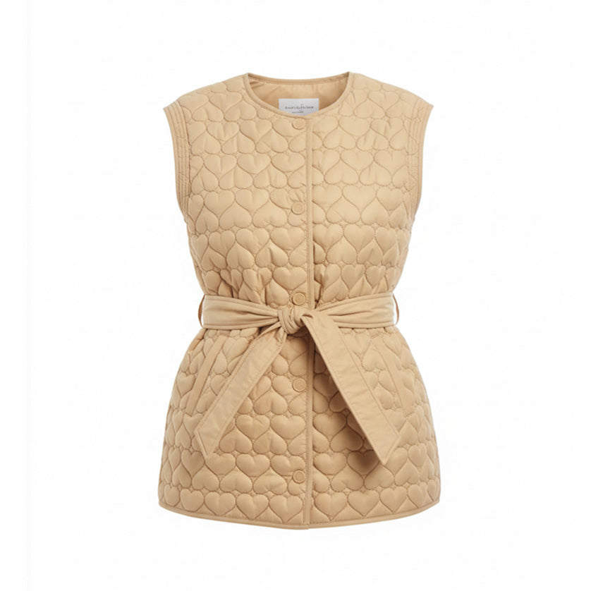 Add a touch of playful warmth to your wardrobe with our Heart-Quilted Vest. This chic layering piece features an eye-catching all-over heart quilting pattern for a distinct, stylish texture. Complete with a full zip closure and a cozy collar, it offers lightweight warmth and a flattering fit.
